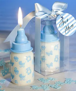 Adorable and festive, these pink OR blue baby bottle candle favors will really light up your  guests' day